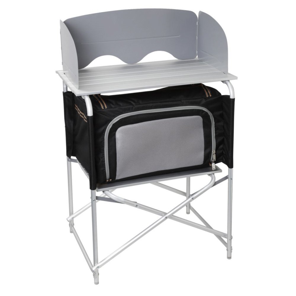 Kompaktan, sklopivi kuhinjski ormarić s ladicom za pohranu koji se može ukloniti.Ormar se može rasklopiti radi lakšeg nošenja proizvoda. Jedna od stajaćih nogu je podesiva po visini pa se lakše prilagođava potrebama koriosnika i okruženju.