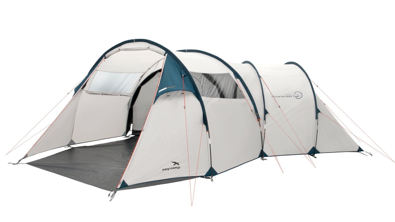Šotor Easy Camp Alicante 600 Twin tunnel je ODLIČEN za velike družine in skupine prijateljev, ki se veselijo preživljanja trenutkov na sončnih počitnicah. Prilagodljiv dostop, zanimiva zasnova dveh spalnic, notranjost SleepTight+ zagotavlja, da vas sonce ne bo zbudilo, na voljo pa je dovolj bivalnega prostora.