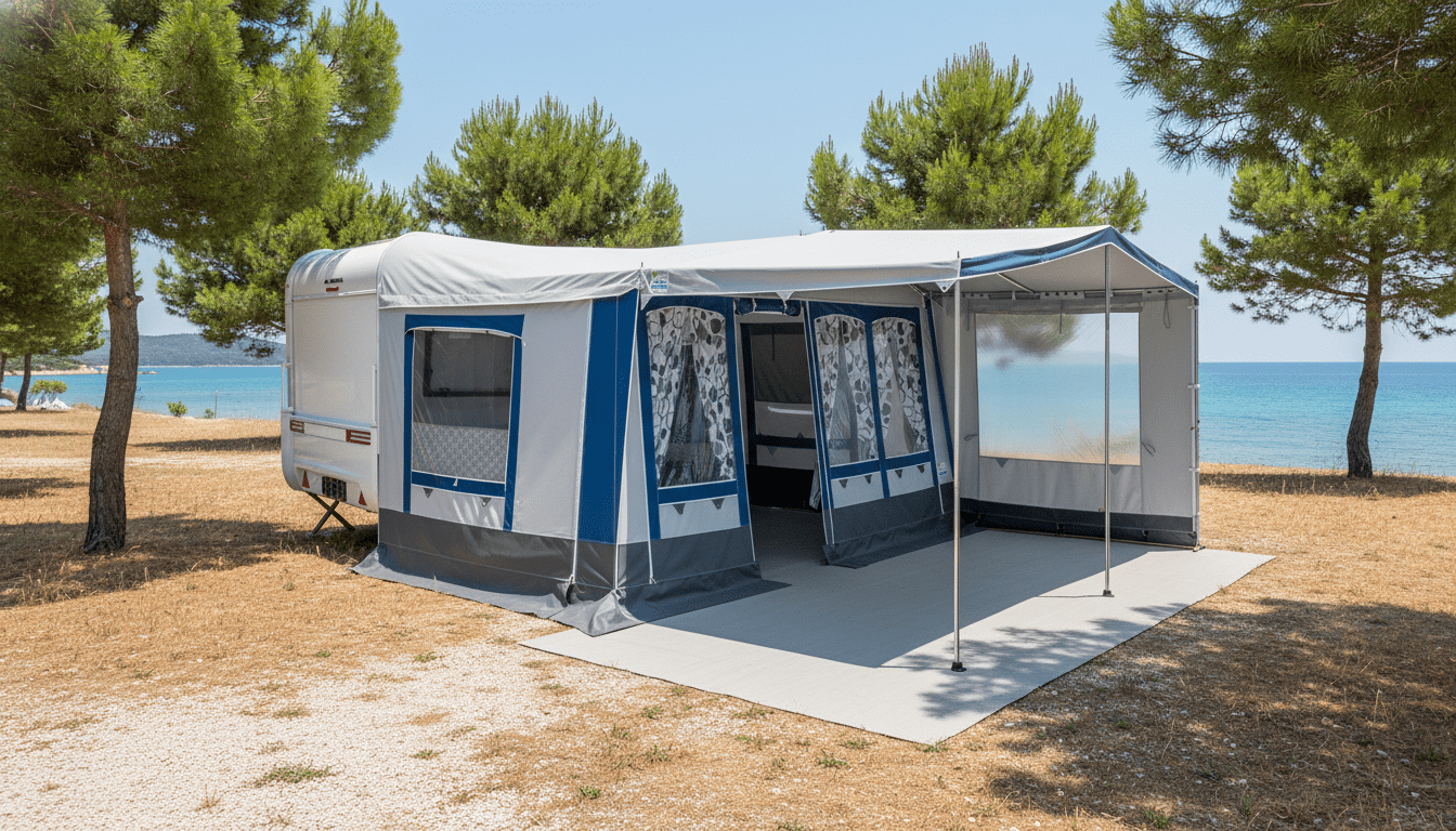 - Povezave z zadrgo med predprostorom/baldahinom ter senčnikom