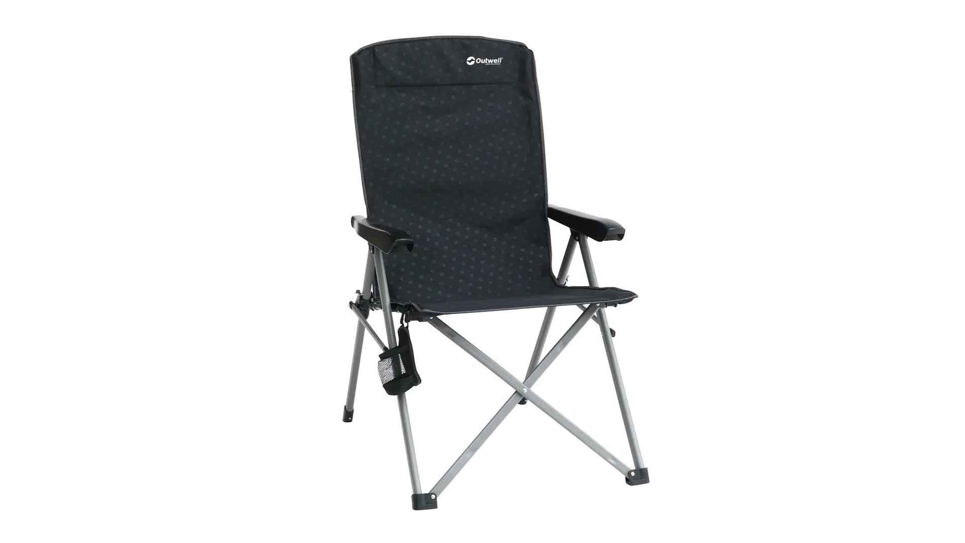 Stol ima široka naslonjala za roke, zaklepni mehanizem za stabilnost in odstranljivo držalo za pijačo, ki ga lahko pritrdite na levo ali desno stran. Zaradi kompaktne zložene velikosti in priložene torbe je enostaven za prenašanje in shranjevanje.