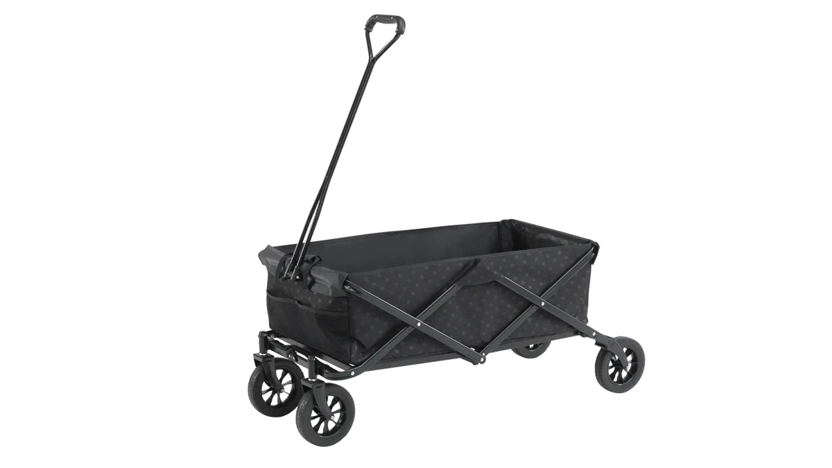 Ročaj dolžine 120 cm omogoča udobno vleko, dodatni ročaj pa olajša prenašanje, ko je voziček zložen. Zahvaljujoč zložljivi zasnovi se hitro odpre in zapre, brez potrebe po sestavljanju.