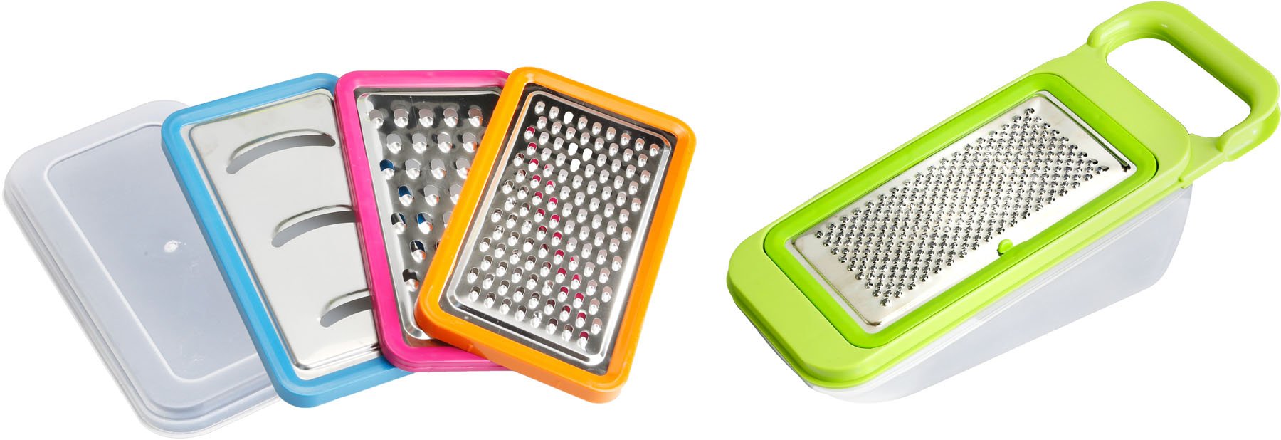 Oštro i dovoljno čvrsto, ne savija se i prilagodljivo je za različite namjernice. Svaki od nastavaka obilježen je drugom bojom, a uz samo pločicu na kojoj su oštrice dobijate i posudu na koju možete da umetnete strugalo kako bi sve namjernice išle direktno u posudu i poklopac, ako je iste potrebno sačuvati dulje vremena.