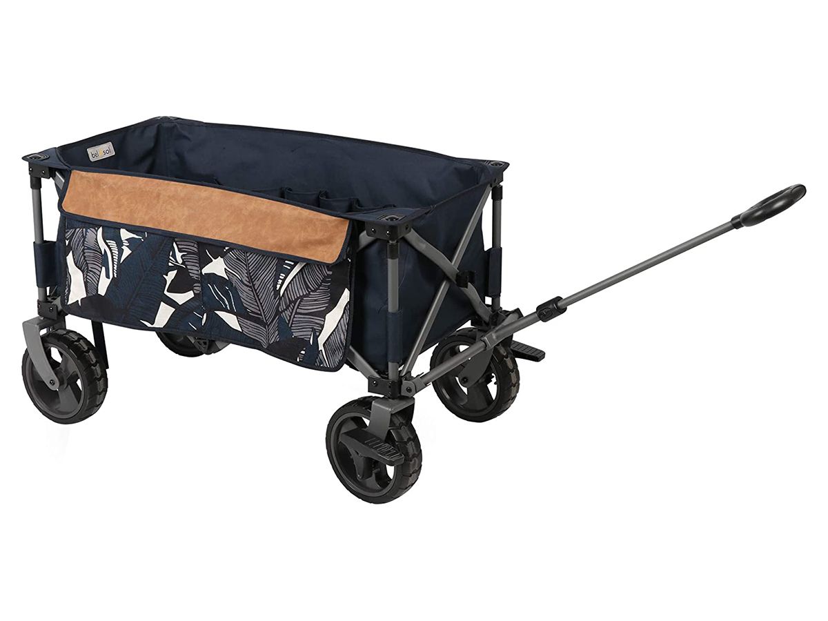 Zahvaljujoč trpežnim PU-kolesom jo lahko brez težav vlečete po vseh vrstah podlage – pesku, travi ali makadamu. Ko je voziček polno naložen, poskrbita dve ročni zavori, da ostane varno na mestu. Za dodatno praktičnost ima Sabrina dve veliki stranski torbi, ki omogočata obilico prostora za shranjevanje.
