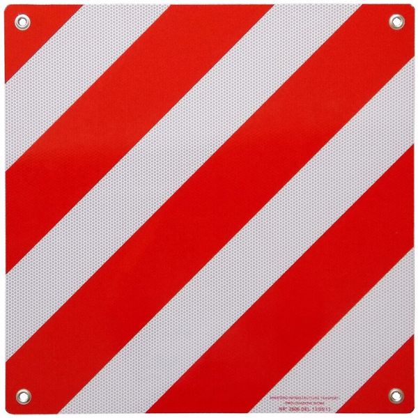 Za previsne tovore. V skladu z italijanskim zakonom o avtocestah so opozorilni znaki iz aluminija potrebni od 1. 1. 1995.